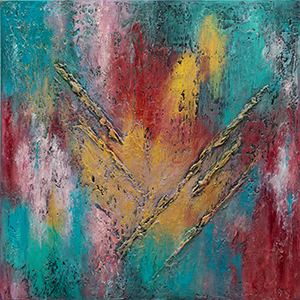 “…my art today comes from what I call the intuitive side of thought of thought and is a form of meditation. When I pick up a brush, the world falls away. I follow the journey inward, eager to see what surprises lie in store. Focusing on the process rather than the finish, “I play with a palette of rich, vibrant colors. My pieces reverberate with hidden meanings as the soul of the image emerges.