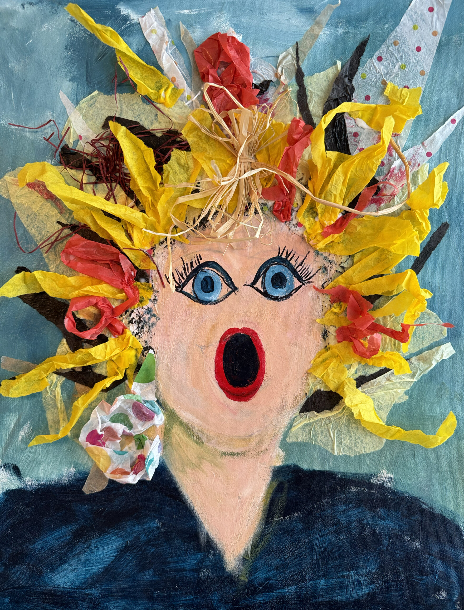 How fun is this?! And who can’t relate to a bad hair day? We all have them! Join Ginny for this tissue-paper-and-paint collage on a 16×20 inch canvas! We’ll have a blast! Choose from our stash or tissue paper or bring your own. This will be a fun night! As always, Come with your besties or fly solo and make new friends. Bring your own snacks and beverage. Gallery supplies everything else. Let’s Paint & Party!